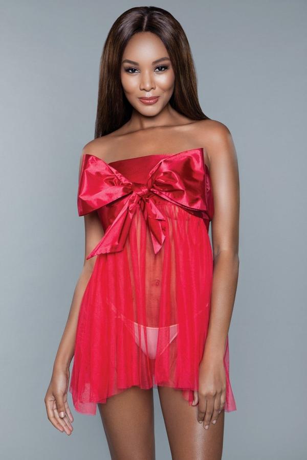 Be Wicked Strapless Ribbon Babydoll w/Kiss Me I'm Yours Bow BW1949